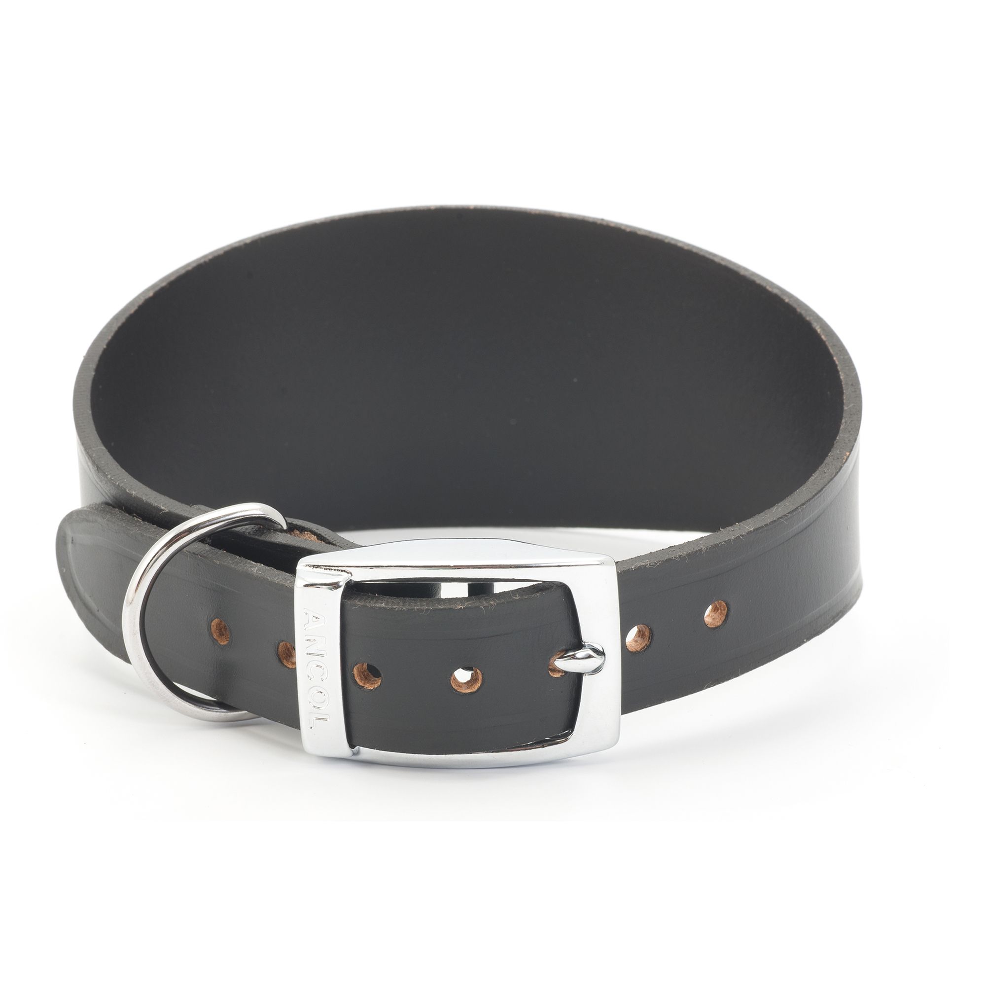 Ancol Black Leather Greyhound Collar is smooth and supple in the hand but very strong to use made using only the finest quality bridle leather. These collars come with heavy duty buckles and D-rings to complement the style and strength of the finished product & the dogs that will be using them.