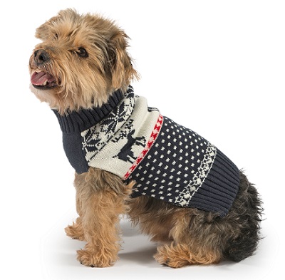 Ancol Xmas Navy Reindeer Dog Jumper. The Navy Reindeer Jumper combines thermal insulation with a cheery Nordic-inspired pattern to celebrate the wintry season. With a thick knit and a snowflake and reindeer design this jumper will keep your dog warm and help them bring seasonal cheer to chilly days. The jumper has been designed with your dog’s comfort in mind. A ribbed hem and collar and stretchy check panel ensures the jumper fits snugly and is easy to put on and remove. The Navy Reindeer Jumper can be used as a stylish insulator in cold weather or as a base layer underneath any Ancol coat.